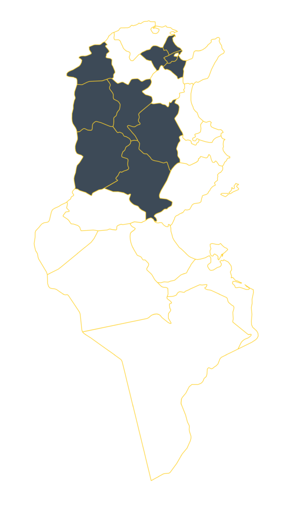 Grand Tunis, Jendouba, Kef, Kasserine, Sidi Bouzid, Kairouan, Siliana